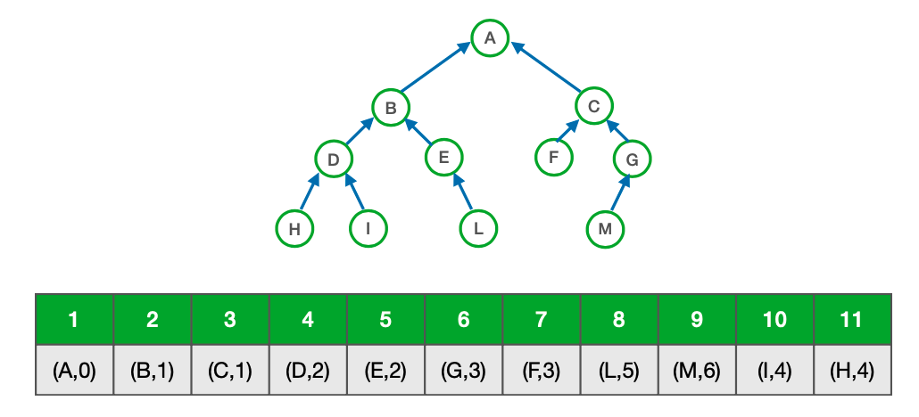I nodi in questo caso sono memorizzati in un array di coppie, dove ogni coppia contiene il valore memorizzato nel nodo e l’indice dell’array che contiene il nodo padre (val, p).