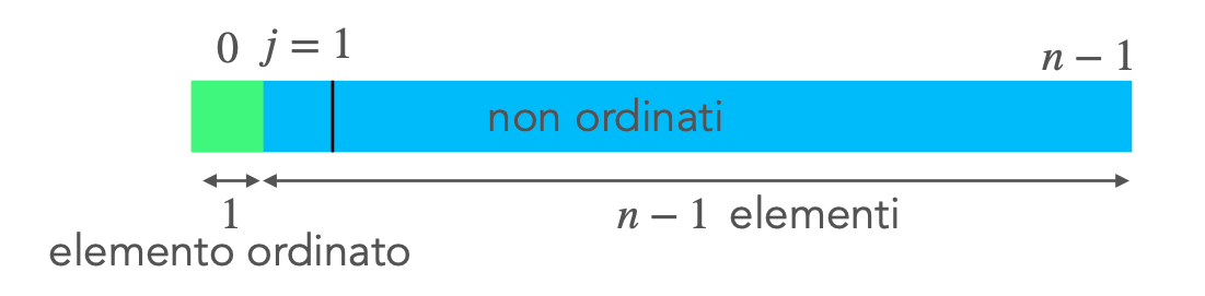 Come costo computazionale calcoliamo i confronti eseguiti tra i valori di A.- si parte con il primo elemento che è ordinato, essendo l’unico