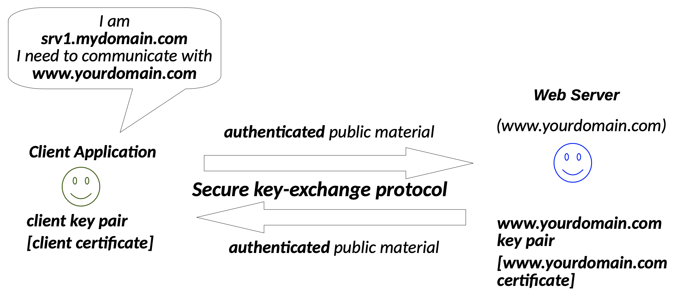 Se invece due server devono parlare, le chiavi sono autenticate da entrambe le parti. Il protocollo è lo stesso, ma il serve autentica anche il client.
