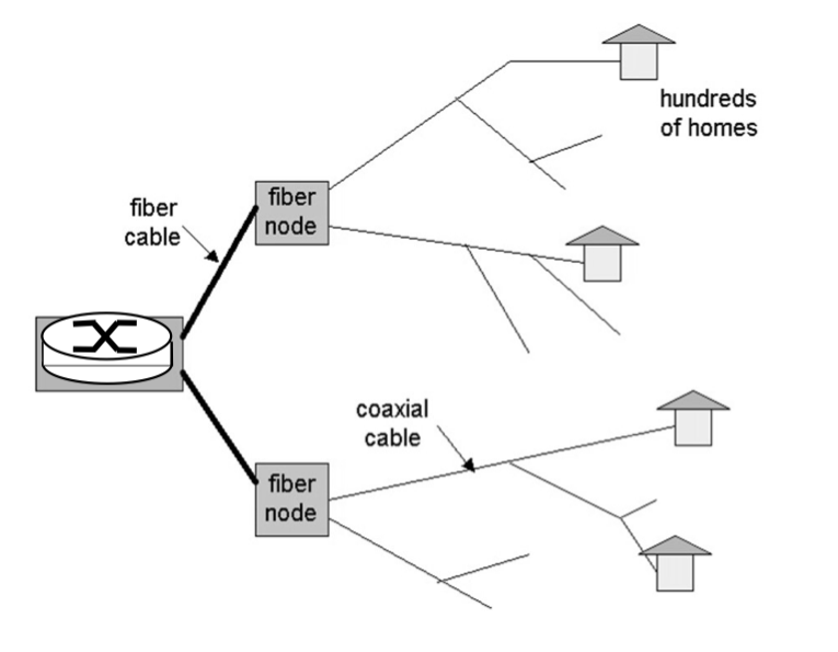HFC - Hybrid Fiber Coax Rete di cavi coassiali e fibra collegano le case ai router dell’ISP. Disponibile solo in paesi con TV via cavo e cable companies.