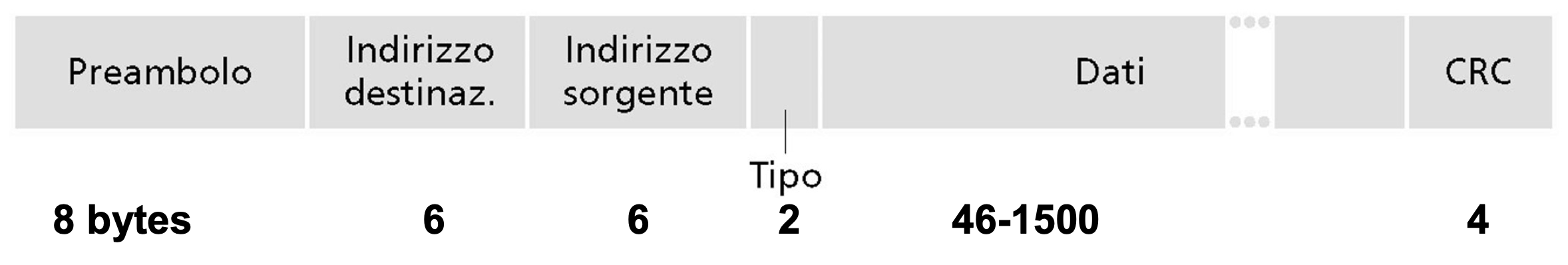 Indirizzi destinatario e sorgente (6 byte) sono gli indirizzi MAC degli host.