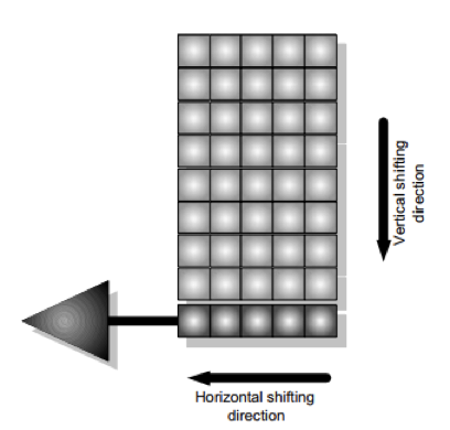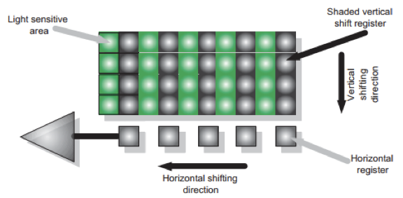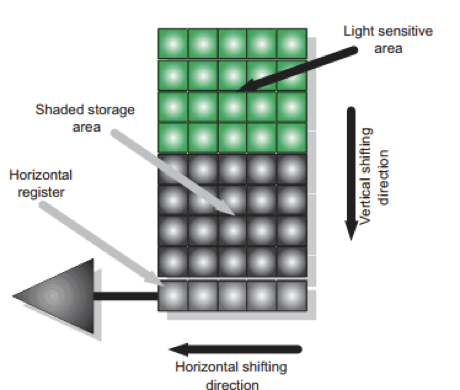 I pixel catturano lal luce, la carica si sposta attraverso i pixel per raggiungere il registro di readout.