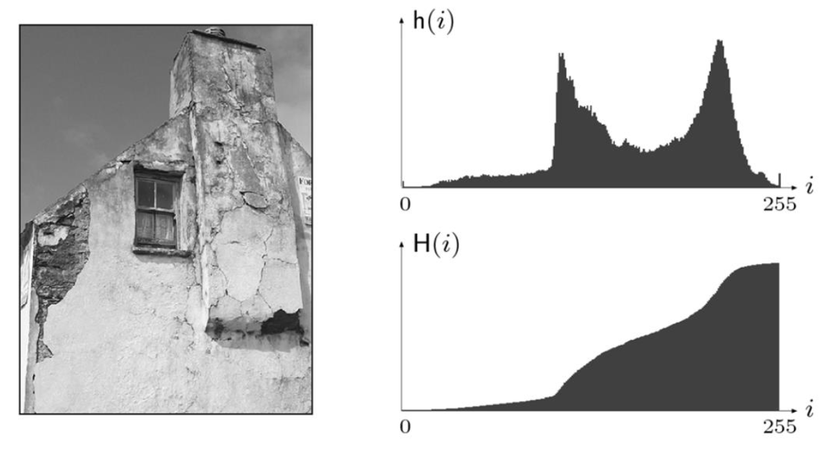 dove è il valore del pixe, è il numero di valori di intensità dell’immagine e è il numero di bin dell’istogramma. La divisione ovviamente è intera. Esempio: tenendo i valori dell’esempio precedente si ha