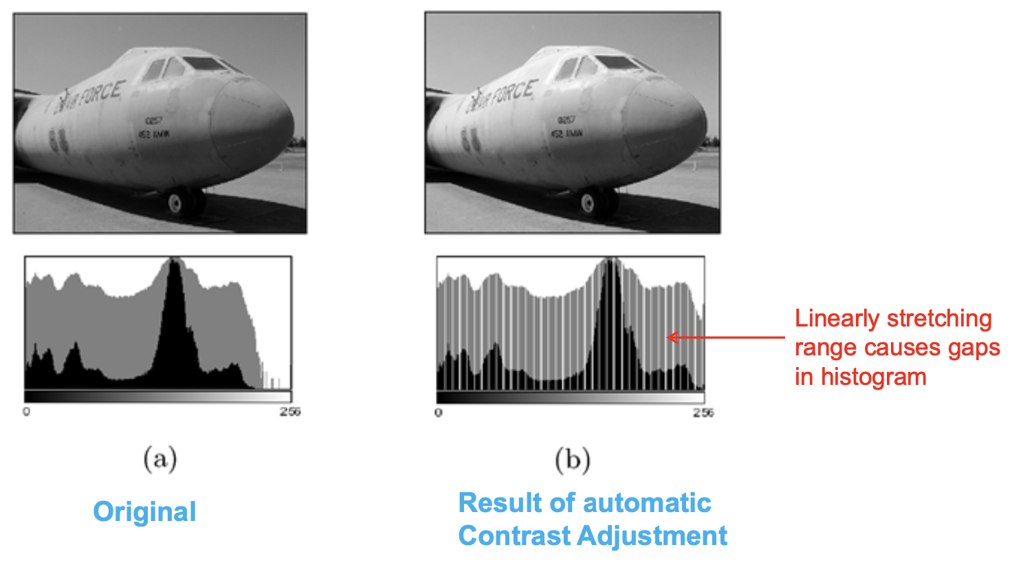 È usato per migliorare immagini scure o slavate. Può essere espresso come una trasformazione di istogrammi: