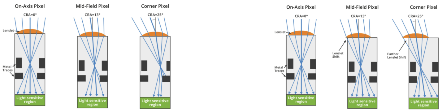 Alcuni sensori per la fotografia hanno un array di microlenti in cui, più ci si sposta dal centro, più queste hanno uno shift, in modo da avere una migliore uniformità luminosa.